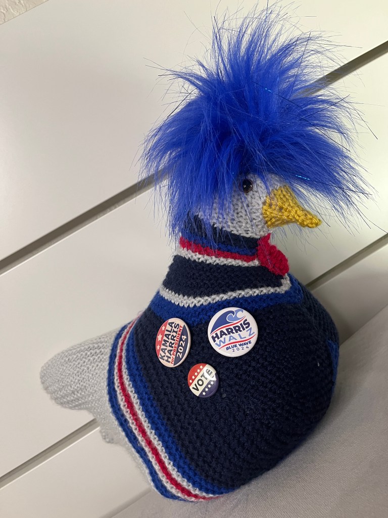 Hello Yarnies, Happy Friday the 13th! Just the launch into spooky season we needed! No formal business meeting this month because I (Arminda) am easily confused by the space-time continuum and don’t understand how calendars work and I got some dates mixed up! Join us for the makers for Kamala viewing party instead! See more below. Likely there will be some Yarnies541 business and planning talk during the event.