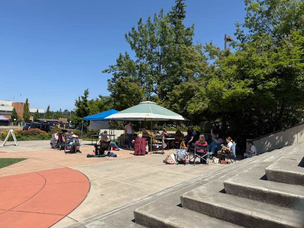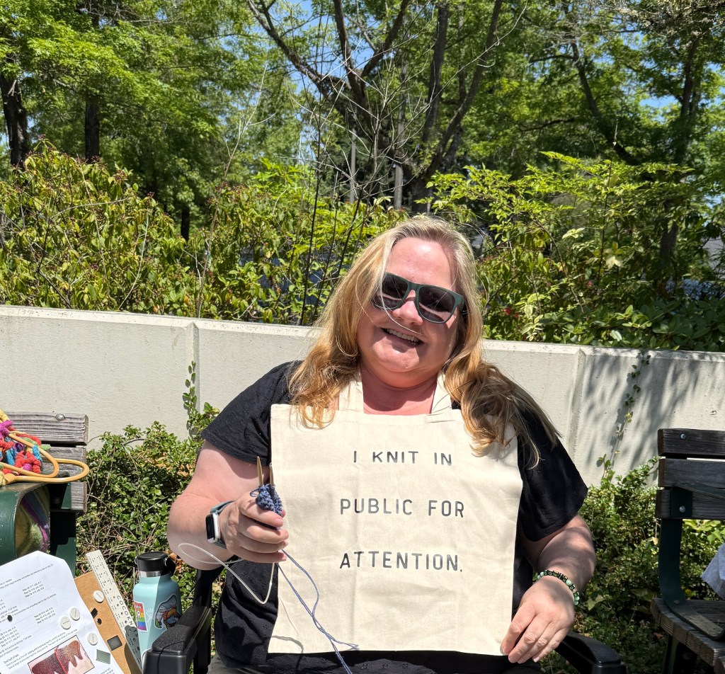 Yarn In Public Day 2025 was a success! Perfect weather, great community, and lots of conversations about what we’re doing to support change in our communities! We made new friends and stitched, looped, spun, and wove the day away.