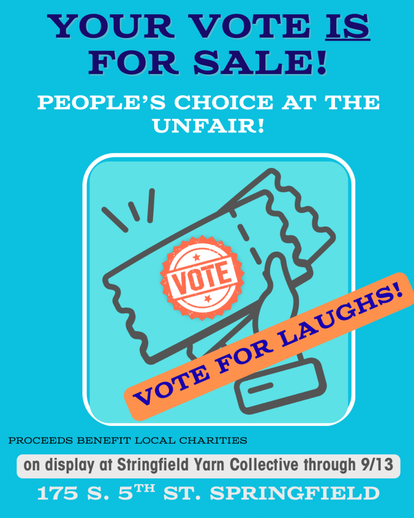 The “Un”Fair is still happening! A new event Yarnies541 is hosting at Stringfield Yarn Collective from September 5th-12th. Items will be displayed in the shop through Springfield’s Art Walk on September 12th and folks will be able to purchase tickets to submit votes for their favorite items with proceeds going toward a community cause (exact organization to be voted on at our business meeting on Sunday). Stringfield Yarn Collective is located at 175 S. 5th St. in Springfield. Hours and location here: www.stringfieldyarncollective.com Winners of the UNfair will get bragging rights and our undying regard for their skills!
